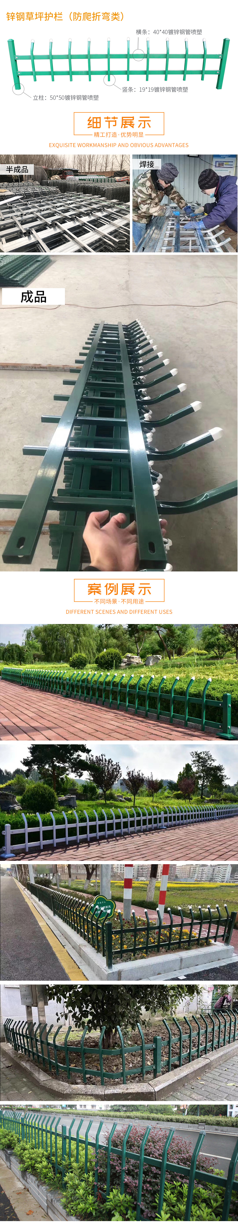 鋅鋼草坪圍欄具有強度高,韌性強、抗靜電、不退色、不開裂、不脆化的特點。